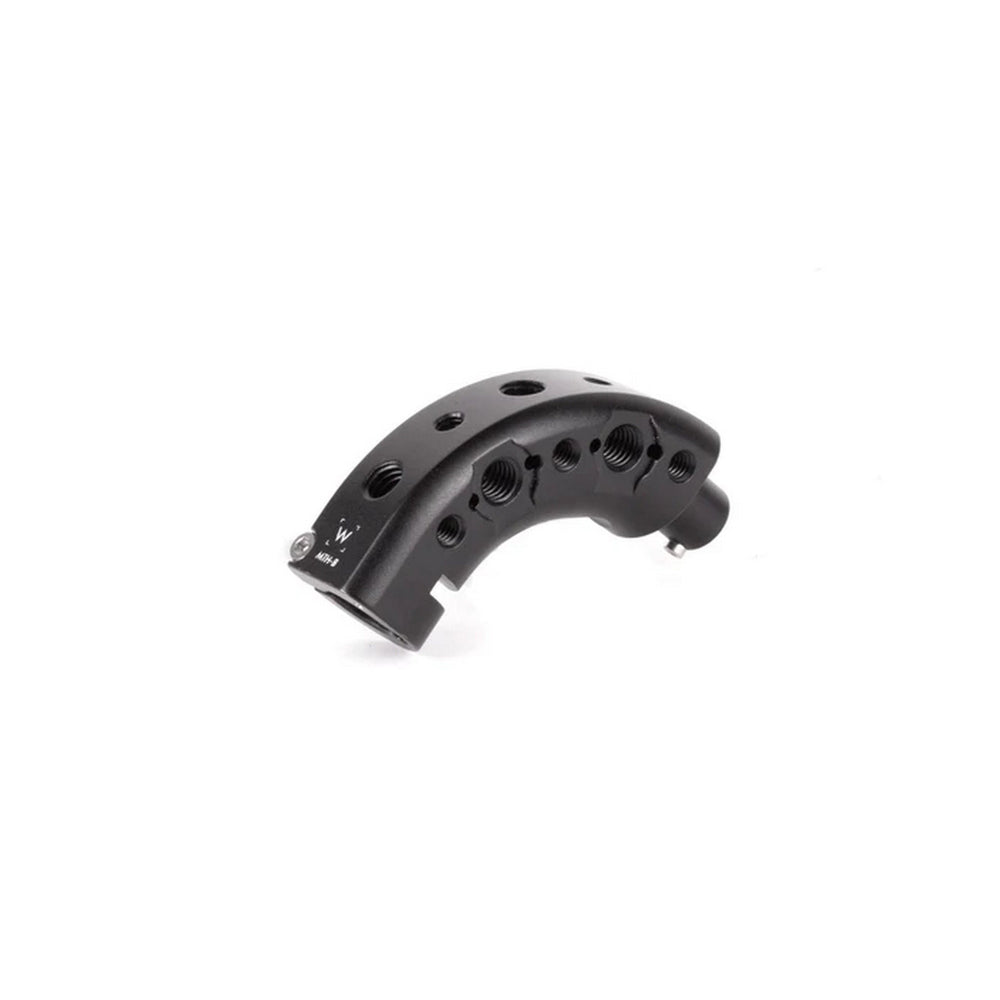 This bent extension attaches securely to the Master Top Handle via a twist-lock tab and slot mechanism plus a locking screw. It provides a compact, angled handle option with versatile mounting, ideal for tailoring your riging setup.