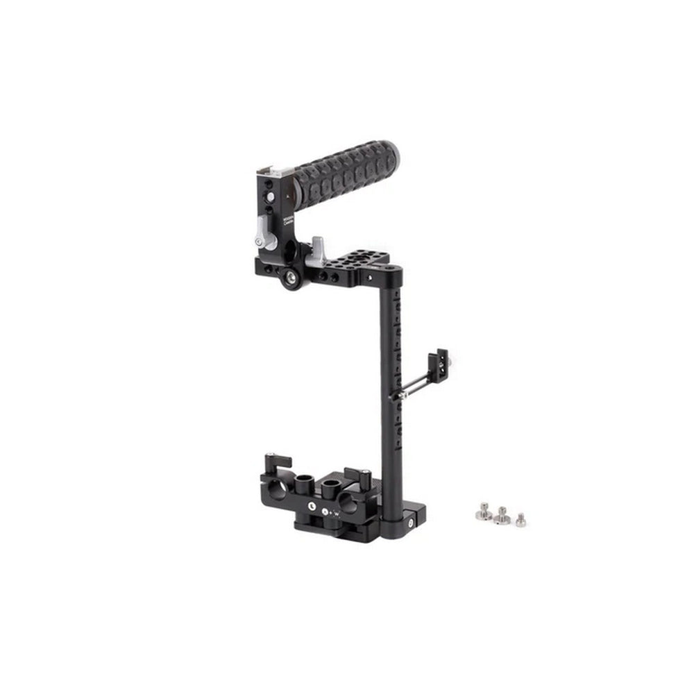 This height-adjustable, quick-release cage fits larger DSLR or mirrorless cameras—like Canon 1DC, 1DX series, or Nikon D4/D850 with a battery grip—and keeps the body’s grip and shoe area accessible. It adds multiple mounting points, an HDMI cable clamp, and a reversible top handle with both cold shoe and rod mount. Choose between a classic wood or optional rubber grip.