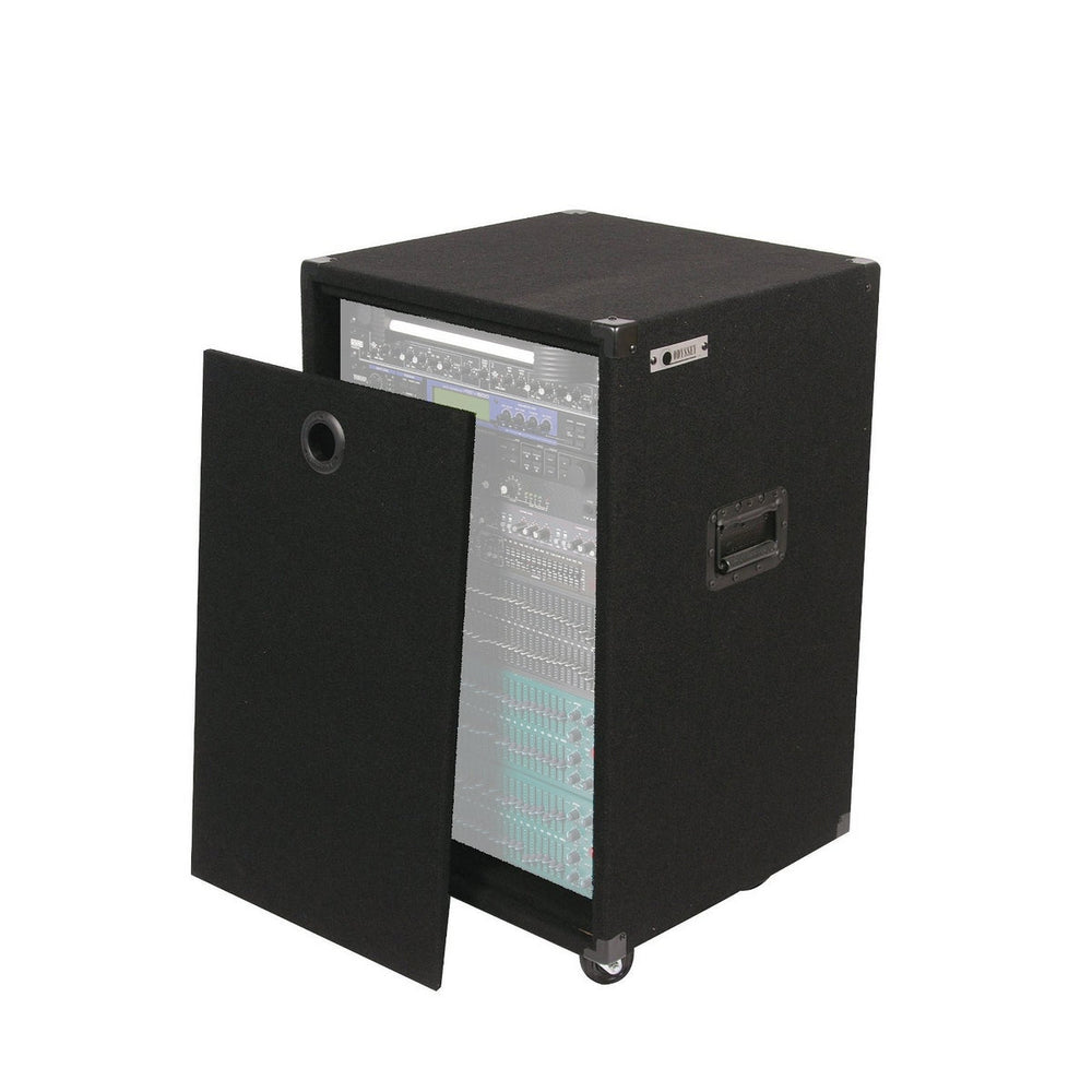 The Odyssey Innovative Design CRE16W Carpeted Econo Rack Case (Black) is a super durable case with all plywood construction and metal hardware. It has heavy-duty, pre-tapped rack rails and friction fit front and rear lids. The case has two recessed large grip handles and built-in wheels.