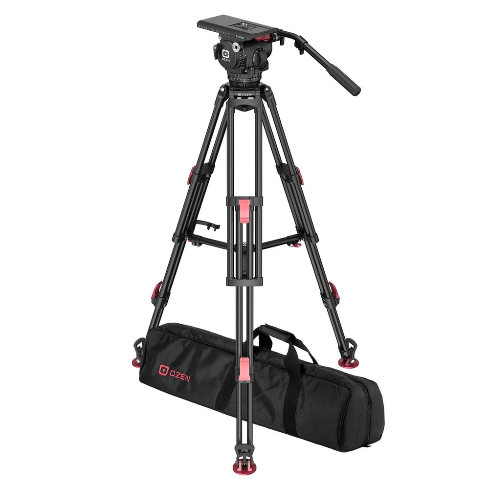 OZEN 18AL2HD Tripod System with AGILE 18 E-Z LOAD 100mm Fluid Head, TR-100AL2HD Heavy-Duty Aluminum Tripod, and Soft Case