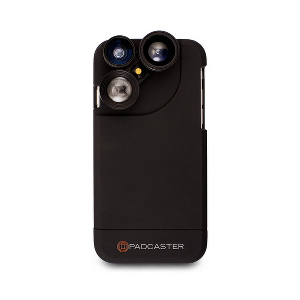 The Padcaster Four in One Lens Case takes the great optics on your iPhone 7 or 8 to a bold new level. Simple to use, just slide your iPhone 7 or 8 in the rugged polycarbonate case, and quickly rotate between telephoto, wide-angle and fisheye lenses with the secure turret-snap mount. Unscrew the outer ring of the wide-angle lens to reveal a 20x macro lens for stunning closeups and that evasive shallow depth of field look. Use on its own for great iPhone photos or clip it into the Padcaster Verse Grip to accessorize with lights and mics; and create a totally versatile, completely professional mobile video production system.