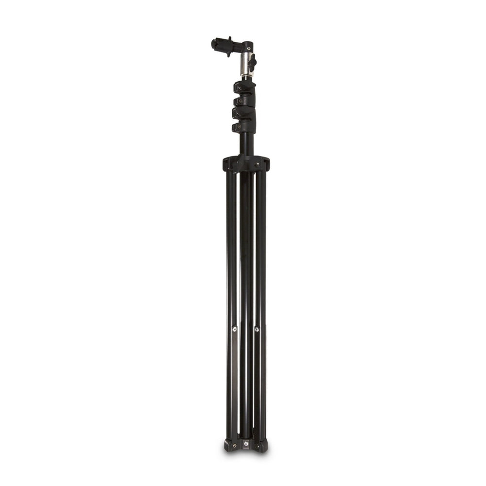 The Padcaster Universal Stand with Greenscreen clamp is an easy to use support system for your Padcaster Green Screen or mobile lighting system. Made of aluminum, Padcaster Universal Stand and clip are both sturdy and lightweight. Simply extend the stand to its desired length, deploy the legs and attach your green screen with the included clamp. To use as a standard light stand, remove the reflector clamp and mount your light to the attached 1/4-20 screw stud. Comes with a zipper carry bag for protection and portability. The stand weighs three pounds and has an adjustable height ranging from 30ā to 90ā.