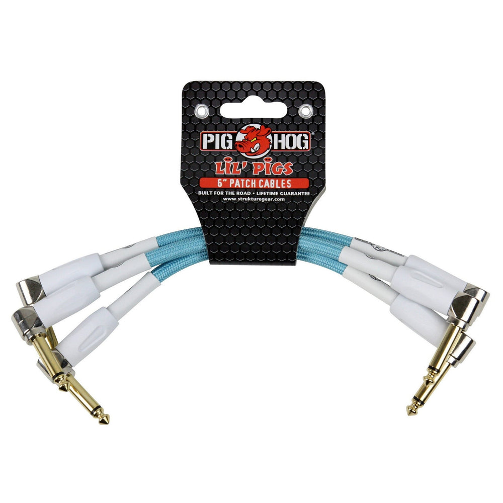 Pig Hog PHLIL6DB "Daphne Blue" 6-Inch Patch Cables, 3-Pack