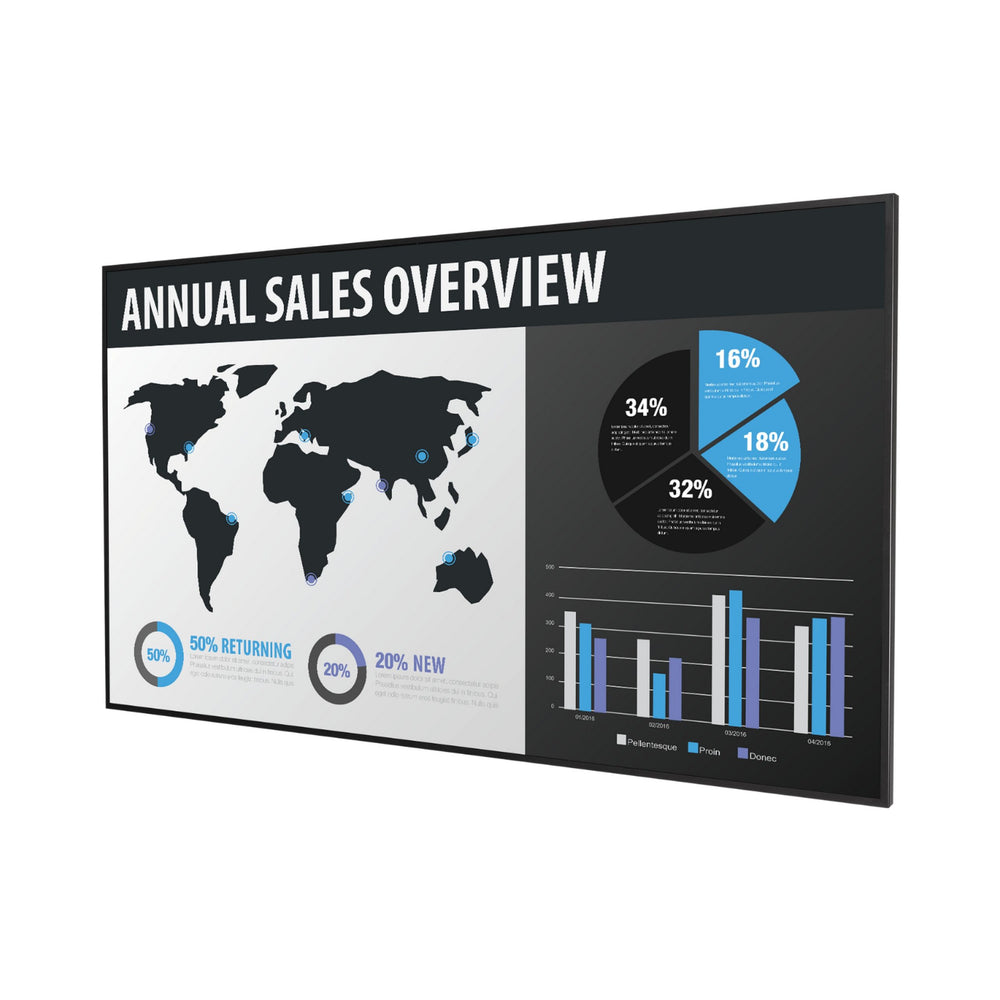 Planar QE Series is a line of 75”, 86” and 98” Ultra HD resolution (3840 x 2160) LCD displays that is ideal for applications ranging from dynamic digital signage to collaborative meeting spaces. Multi-touch models are also available. Planar QE Series displays support native 4K resolution at up to 60Hz via HDMI 2.0 and DisplayPort 1.2, enabling smooth motion video and mouse tracking. Compatible with new and emerging 4K sources, the Planar QE Series uses HDCP 2.2-compliant HDMI 2.0 inputs. With Planar QE Series displays, users can view four sources simultaneously in quad layout and receive remote monitoring alerts via email when a designated event occurs. For precise image control, adjustments can be made within each of the four zones allowing users to optimize the picture quality at the source level.
