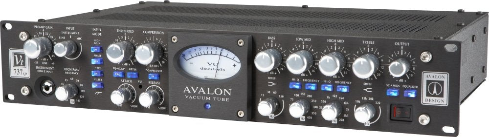 The Avalon VT-737SP features a combination of TUBE preamplifiers, opto-compressor, sweep equalizer, output level and VU metering in a 2U space.