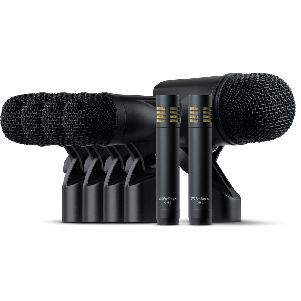 The PreSonus DM-7 drum mic set gives you everything you need to authentically capture your drum kit and just about any other instrument you like. Starting with the foundation, the BD-1 kick drum mic provides a mid-cut frequency response to emphasize both the boom and the attack of your kick drum for tight, robust sound. The four ST-4 microphones will bring out the best in toms and snare drums while staying out of the drummer’s waythanks to the included, adjustable rim mounts. To capture the sizzle of your cymbals and the ambiance of the room, use the two OH-2 small-diaphragm condensers to add space and movement to your drums. With a useful assortment of microphones, included mounts, and a hardshell carrying case, the DM-7 drum microphone set is a single-purchase solution for any drummer, and a welcome addition to any producer or engineer’s mic locker.