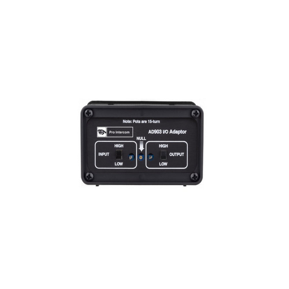 The AD903 has many functions for getting various levels of audio into an intercom circuit, or getting the intercom audio "traffic" out to an amplifier or recorder. It is also useful as a 2-to-4 wire adaptor for connecting 4-wire communications into and out of a standard intercom circuit. The 'Null' control allows you to minimize or even eliminate any "cross-talk" between the input and output. The input transformer is a studio grade device and will not degrade any audio that you feed it. The AD903 is also commonly used for connecting to a video camera CCU where a built-in intercom is provided that is not compatible with Pro Intercom or any of the other 200 Ohm unbalanced intercom systems.