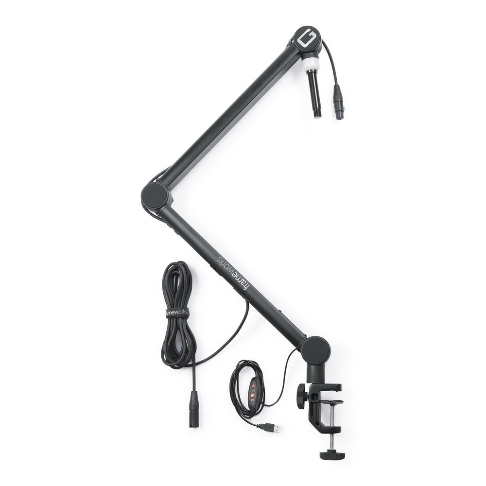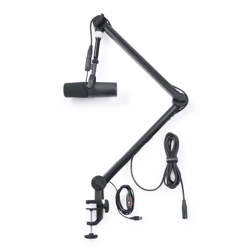 • Professional desktop broadcast/podcast microphone boom stand with on-air indicator light