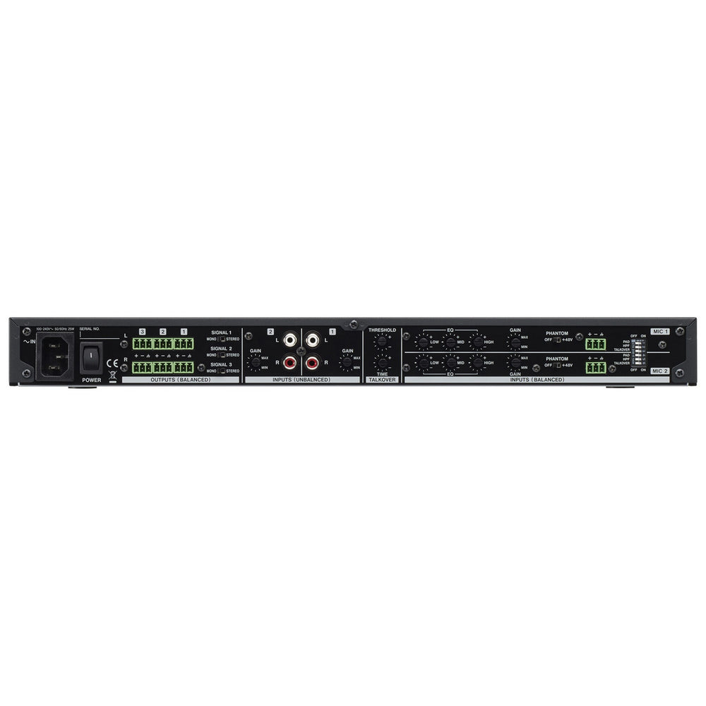 This professional-grade mixer features three input channels and a 'Talk Over' function that automatically attenuates background music during announcements, ensuring superior audibility. The MZ-123BT is a powerhouse when it comes to routing, mixing, and distributing audio efficiently. It also includes a headphone jack for monitoring each output channel, providing additional convenience and control. Whether you’re managing a bustling restaurant or need an efficient audio solution for a large retail store, the Tascam MZ-123BT delivers reliable performance with excellent sound quality and operational simplicity.