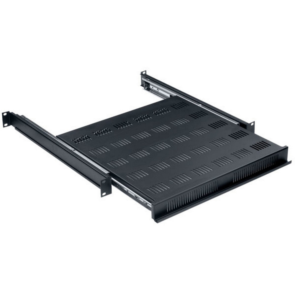 19 inch vented rack shelf can be installed as a shallowdrawer or shelf. The unit requires front and rear mounting rails and shipsready-to-install.