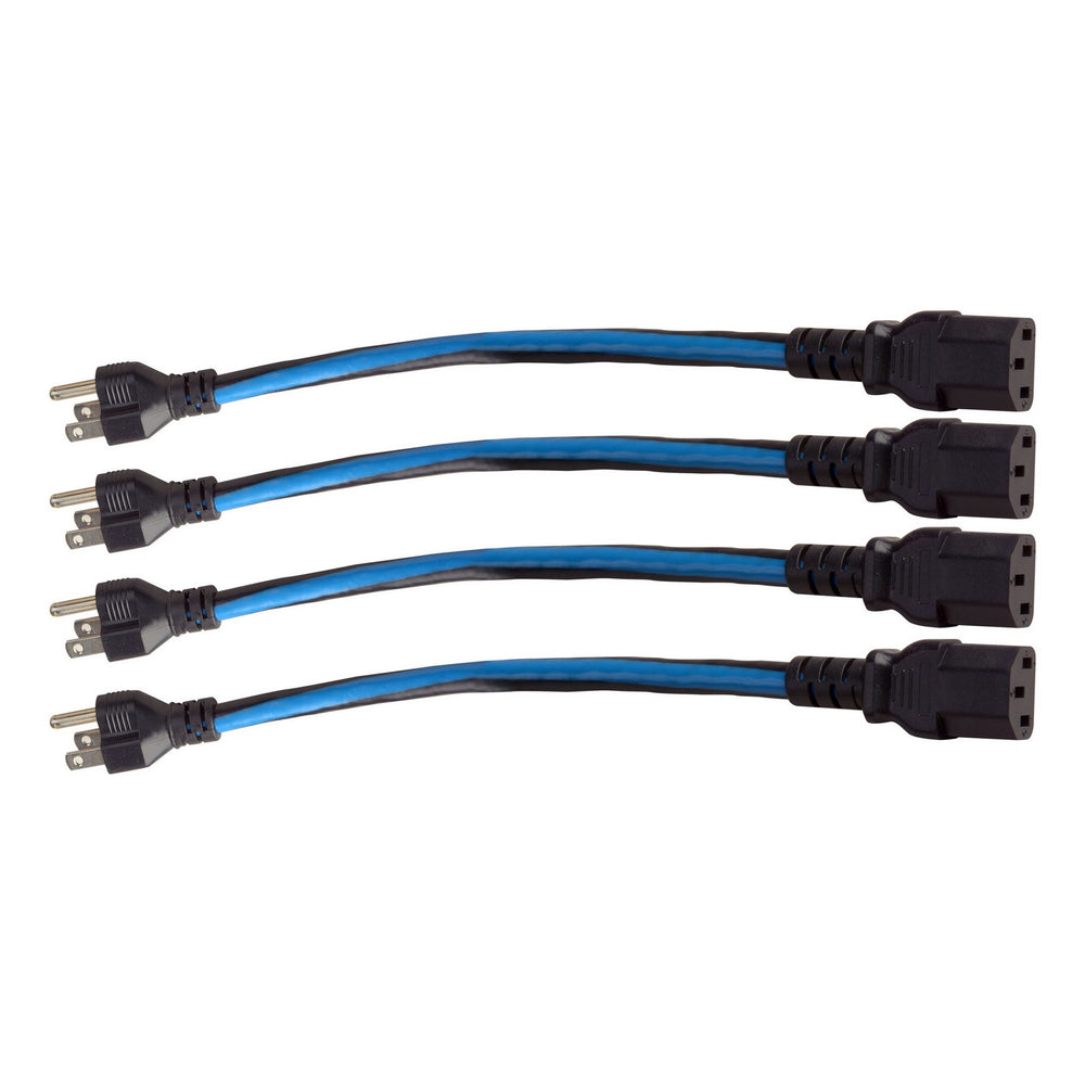 Substitute for standard power cords provided with common components Eliminate space-wasting cable slack and cable loops Color-coded connectors for even easier servicing Reduce system noise and stray AC magnetic fields Multiple sizes to provide the best length for the job Sold in packs of four IEC-6X4 - 6" IEC power cord IEC-6X20-90L - 6" Low-Profile Left Hand IEC power cord IEC-12X4 - 12" IEC power cord IEC-18X4 - 18" IEC power cord IEC-24X4 - 14" IEC power cord IEC-36X4 - 36" IEC power cord IEC-48X20-90L - 48" Low-Profile Left Hand IEC power cord IEC-48X20-90R - 48" Low-Profile Right Hand IEC power cord