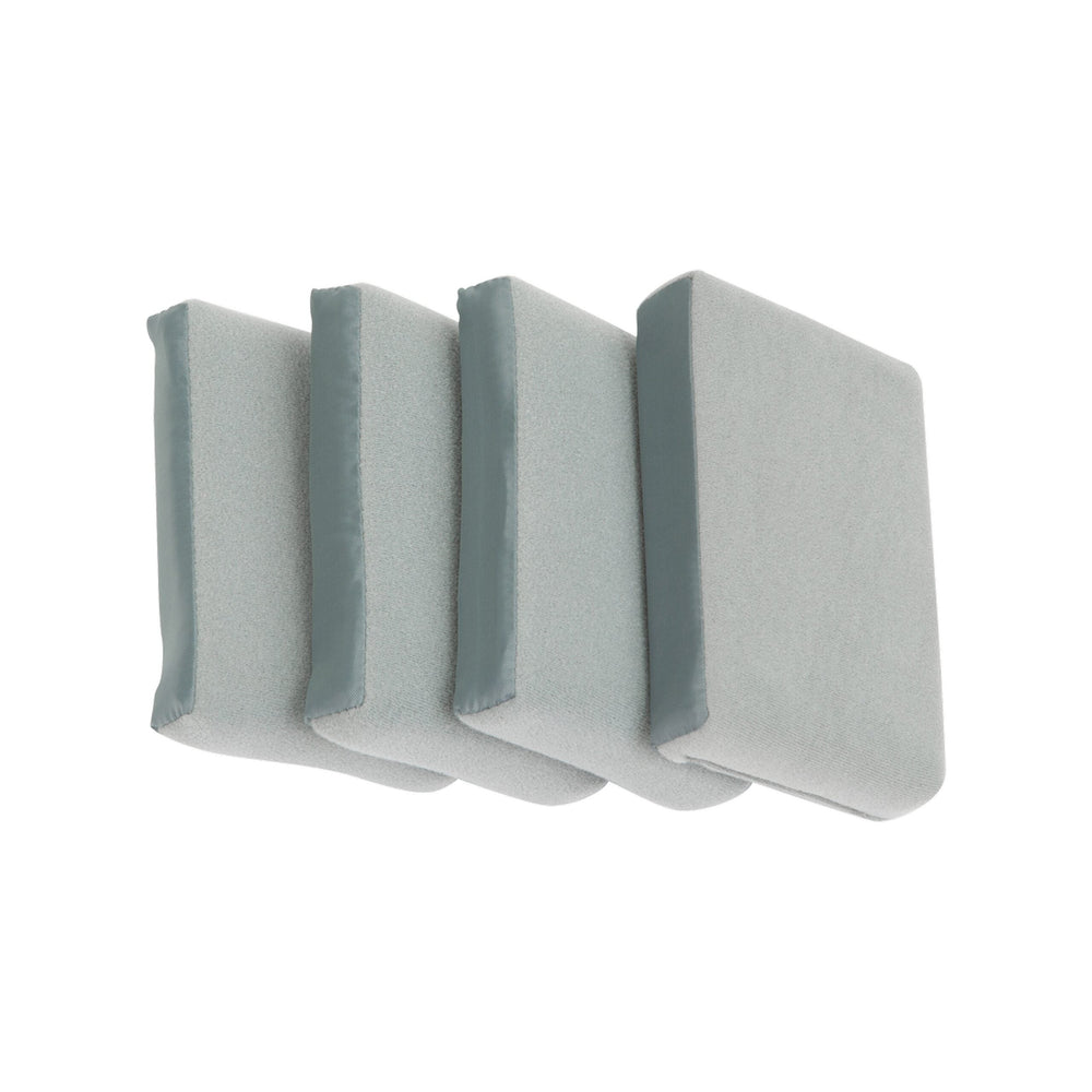 - 4 Nylex-wrapped closed cell foam pads with hook tabs stitched on back