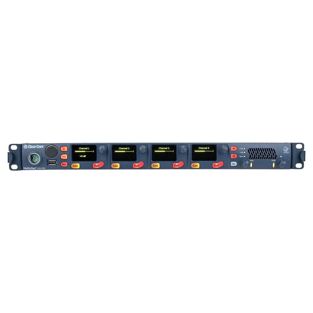 The HelixNet HXII-RM/HRM-4X is a cutting-edge 1RU 4-channel intercom remote user station, integral to Clear-Com's HelixNet digital network intercom system. This user station excels in delivering high-definition audio and user-friendly control, suitable for various professional settings such as broadcasting, live events, and production environments. Designed to fit seamlessly into 1RU racks, the HXII-RM/HRM-4X offers a robust solution for managing complex communication needs with ease and reliability.