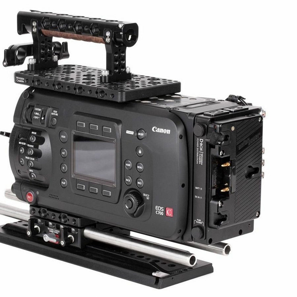 D-Box (Canon C700, Gold Mount) adds power distribution, standardized remote start/stop, and hot swap capability to the Canon C700. The D-Box attaches directly to the back of the camera body using a special Molex connector eliminating external cabling. It also interfaces with the rear LANC port which is how the D-Box controls the camera's run/stop. Connectors on the D-Box are contoured in line with the Canon C700 body, streamlining port connections and cable management. The module also provides two 3pin Fischer ports, allowing start/stop with any ARRI standard trigger device. The D-Box is equipped with a RED 6pin LEMO compatible DC Input allowing an AC power supply or external power plate to be connected to power the camera and accessories during a battery change. When both battery and DC input are utilized, the D-Box defaults to the DC input, leaving the battery fully charged. D-Box Connections: 1. P-Tap - 12V Unregulated 2. USB - 5V Regulated 3. 2 pin LEMO compatible connector - 12V Unregulated - ARRI standard wiring 4. 2 pin LEMO compatible connector - 12V Unregulated - ARRI standard wiring 5. 3 pin Fischer - 24V Regulated - Regulator built in to convert battery voltage to 24V - Maximum 2A continuous (3A surge) shared between the two 3pin Fischers - ARRI standard start/stop capabilities 6. 3 pin Fischer - 24V Regulated - Regulator built in to convert battery voltage to 24V - Maximum 2A continuous (3A surge) shared between the two 3pin Fischers - ARRI standard start/stop capabilities 7. DC Input - 12-16V - RED 6pin LEMO compatible DC Input XLR - Priority is given to DC Input to preserve battery charge when both sources connected