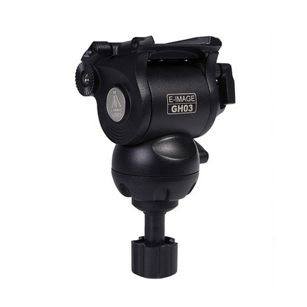 The E-Image GH03 will fit a 75mm bowl tripod system. The fixed counterbalance helps support payloads of up to 11 pounds and combined with a variable tilt drag allows you to adjust the movement to suit your needs. The Easy-Lock Base Plate System allows you to attach the quick release plate to the head in two ways: by snapping in the plate from the top, or by sliding the camera plate from the rear. The head incorporates a bubble level, and a ¼-20 threaded mounting point for a monitor arm or other accessories.