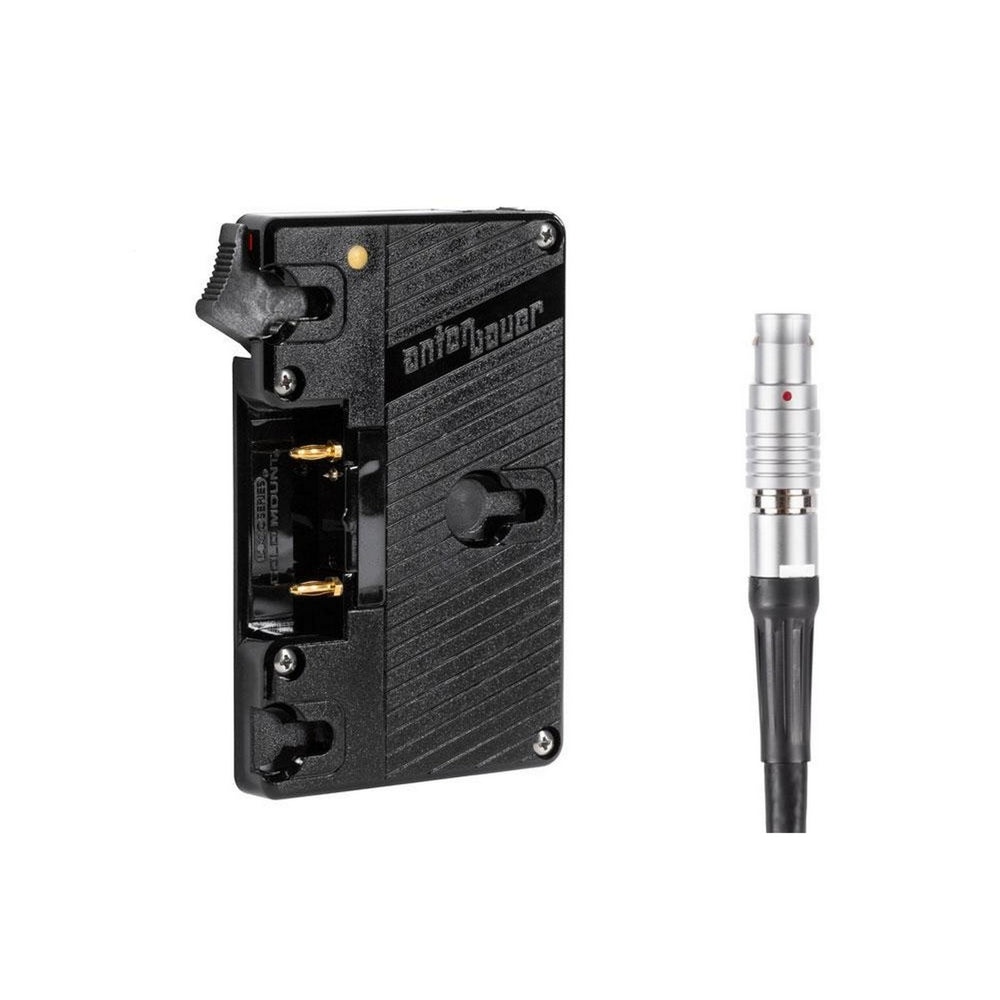 Wooden Camera brand Gold Mount plate utilizing authentic Anton Bauer plate and RED ONE LEMO compatible connector.