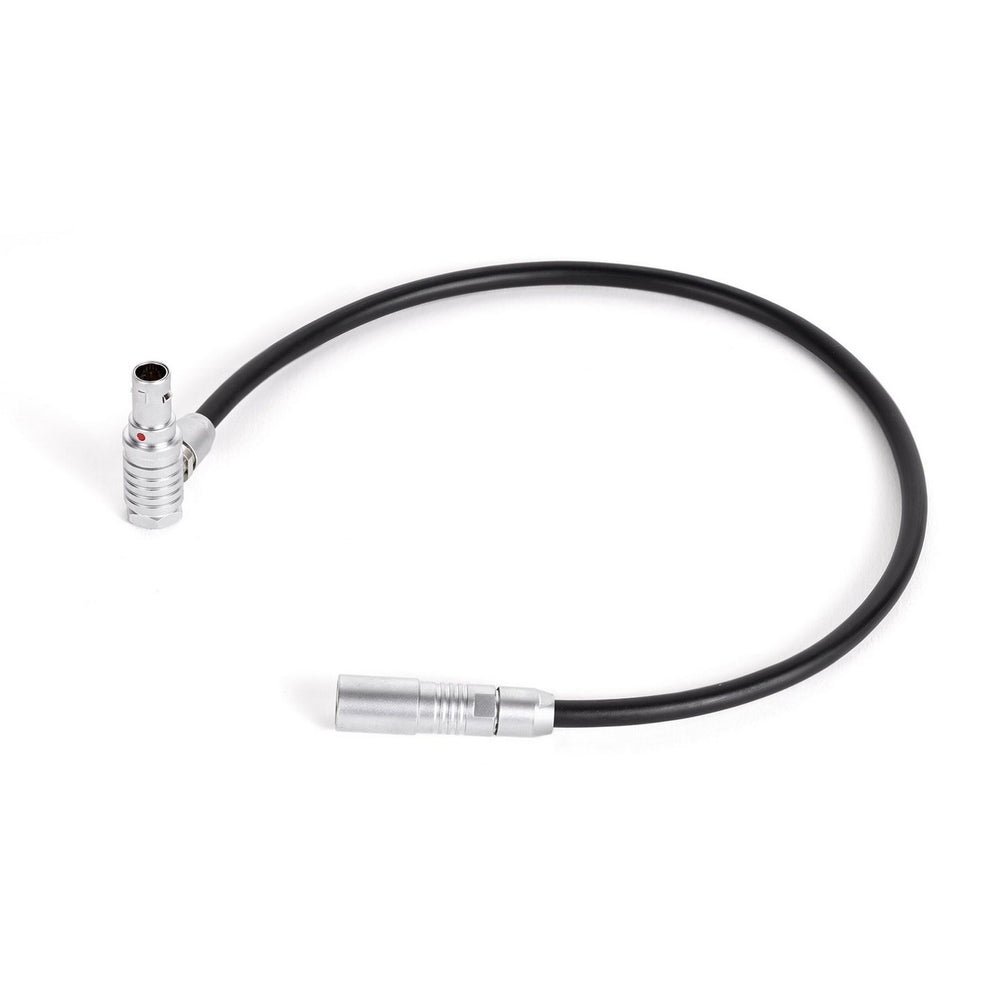 RED KOMODO 3pin Fischer Trigger Cable is a Female 3pin Fischer wired in ARRI standard configuration to a right angle, RED EXT, 9pin LEMO. The connector exits toward the operator side, leaving other ports or accessories on the back of the camera accessible.