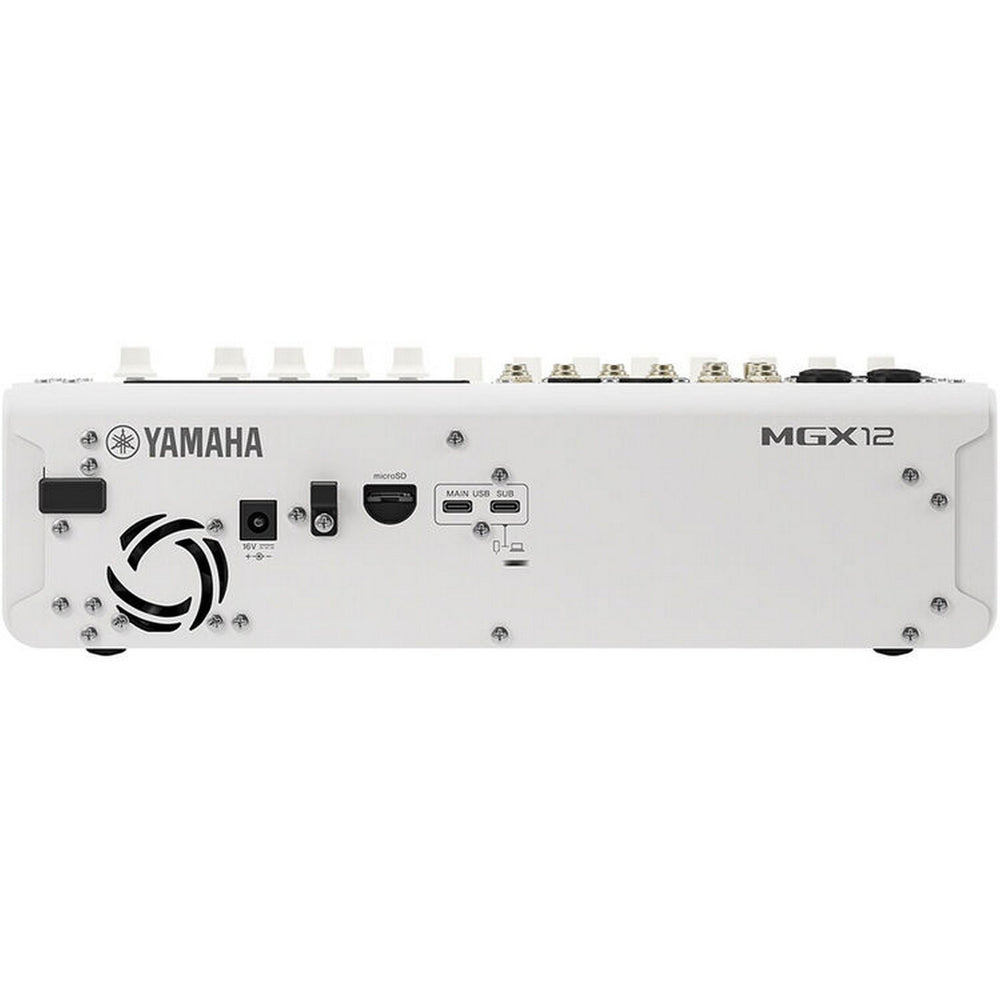 The Yamaha MGX12 is a compact digital mixing console designed for live sound, recording, streaming, and hybrid audio/video production. It delivers professional-grade audio performance with intuitive touchscreen control and flexible routing for modern workflows.