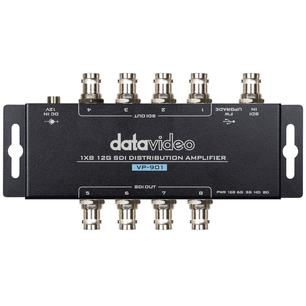 The Datavideo VP-901 1x8 12G SDI Distribution Amplifier empowers you to flawlessly distribute a single 12G, 4K, HD, or SD-SDI signal to eight SDI outputs simultaneously. This versatile device ensures reliable video transmission for various applications, including digital signage, broadcast studios, post-production suites, and professional AV applications.