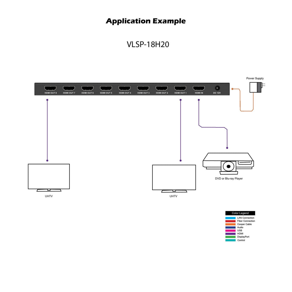 - Distributes 18Gbps UHD video to 8 HDMI displays simultaneously