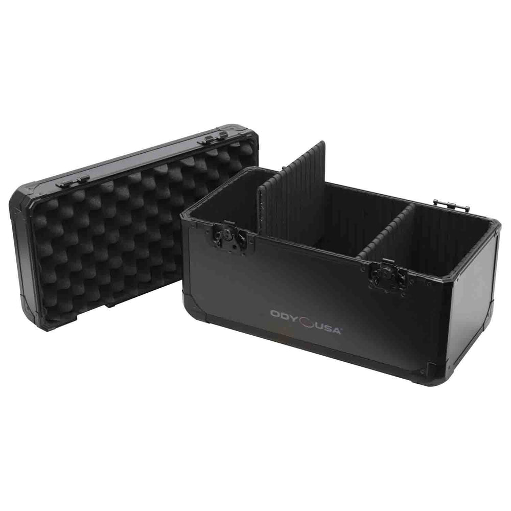 Odyssey's Black Krom cases are made to the same standards as our original Krom series, but with a twist. The hardware including the aluminum trim are coated a sleek "Black". The steel corners are uniquely hexagon-shaped and each also features rubber feet for stacking multiple record cases, a must for the collections of vinyl purists and of DJs who are true to the art of turntablism.
