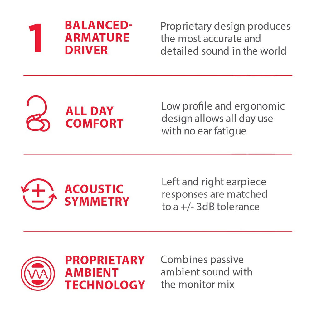 - Passive Ambience Technology: Allows ambient sounds to blend with the monitor mix for a natural listening experience.