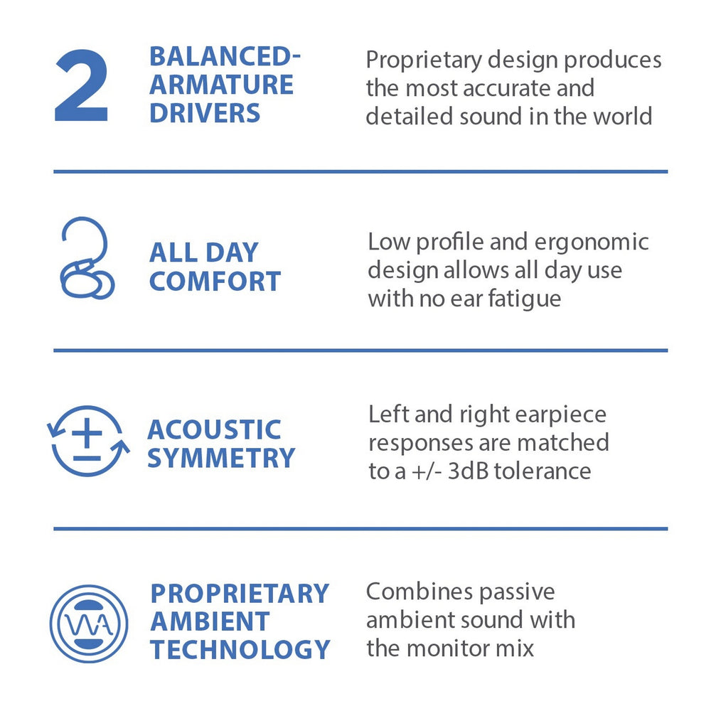 - Passive Ambient Technology: Allows ambient sounds to blend with the monitor mix for a natural listening experience.