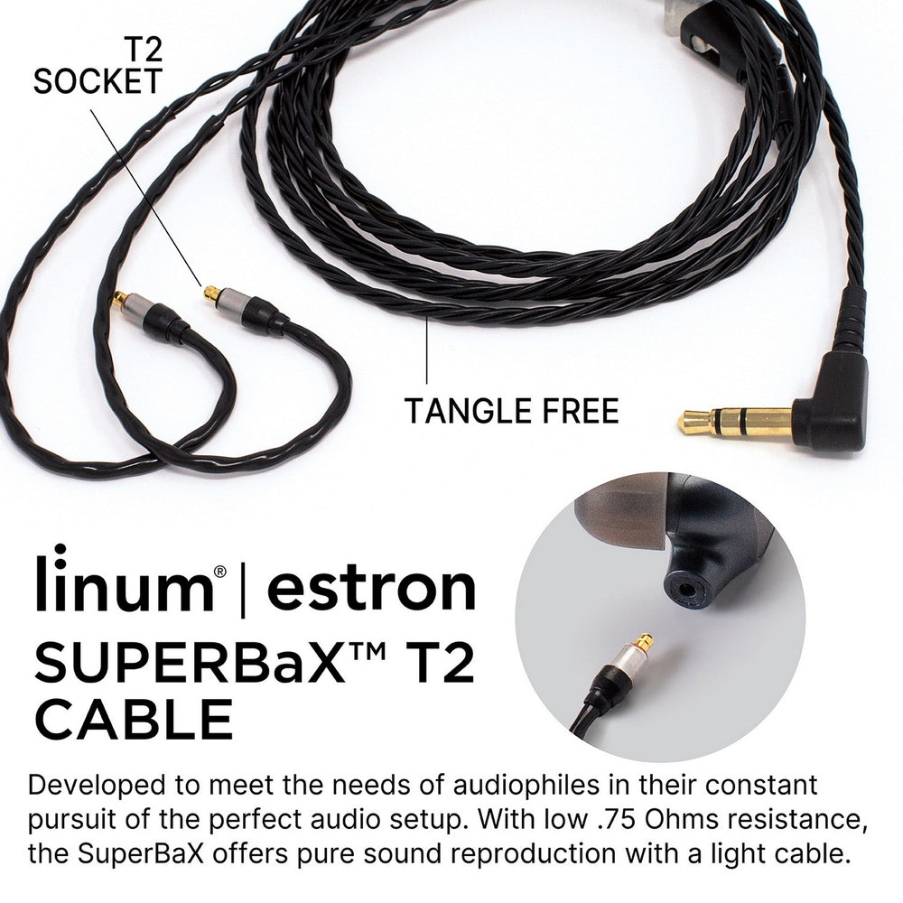 - Cable: 50" (127 cm) Linum BaX T2 silver-plated copper cable