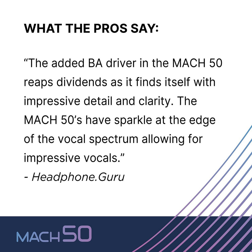 Equipped with the Linum Estron SuperBaX T2 cable, known for its ultra-lightweight and durable construction, the MACH 50 minimizes microphonics and provides a secure fit. The inclusion of multiple ear tips and a protective monitor vault ensures a customized and safe user experience. Whether you're mixing, mastering, or performing live, the MACH 50 offers the precision and clarity needed for professional audio applications.