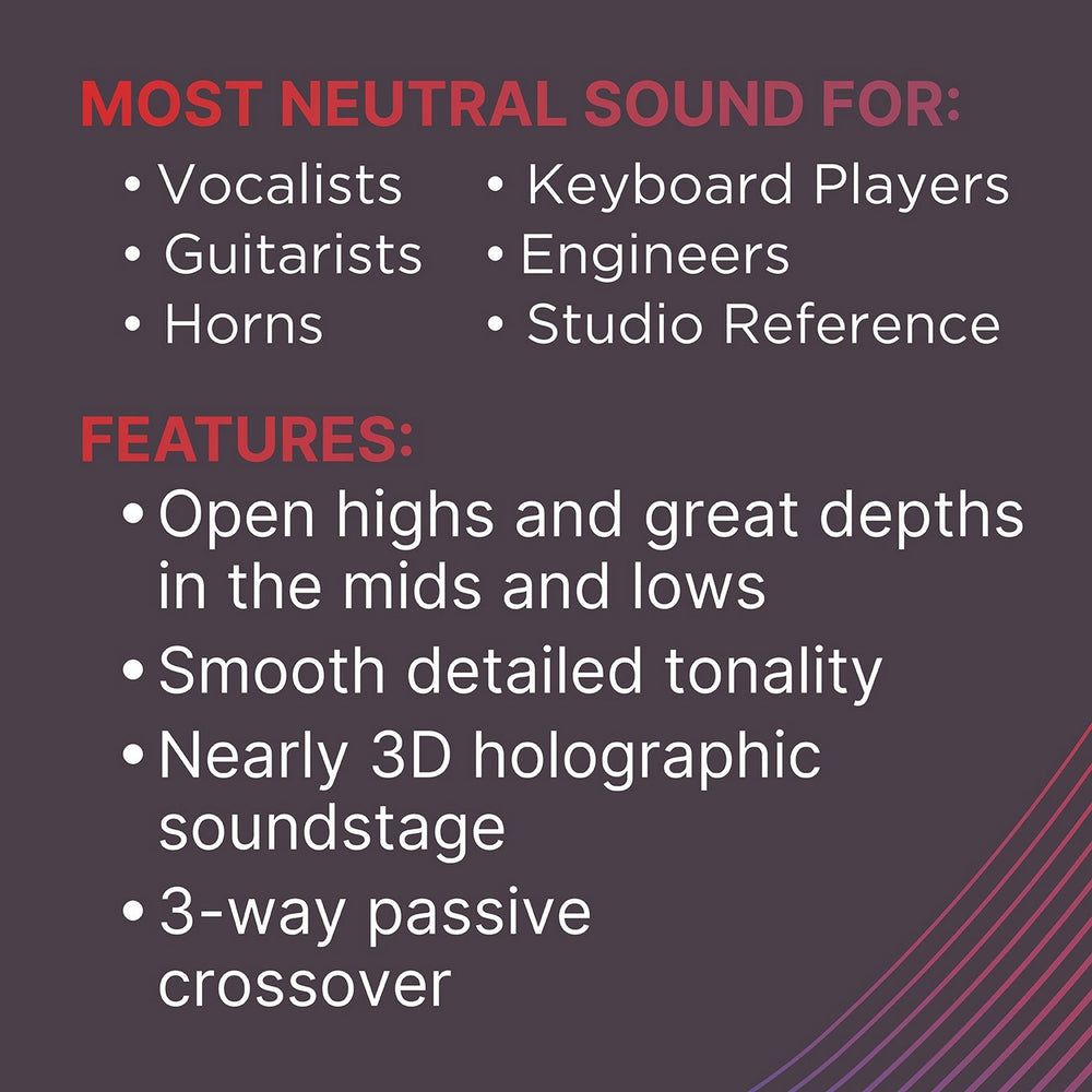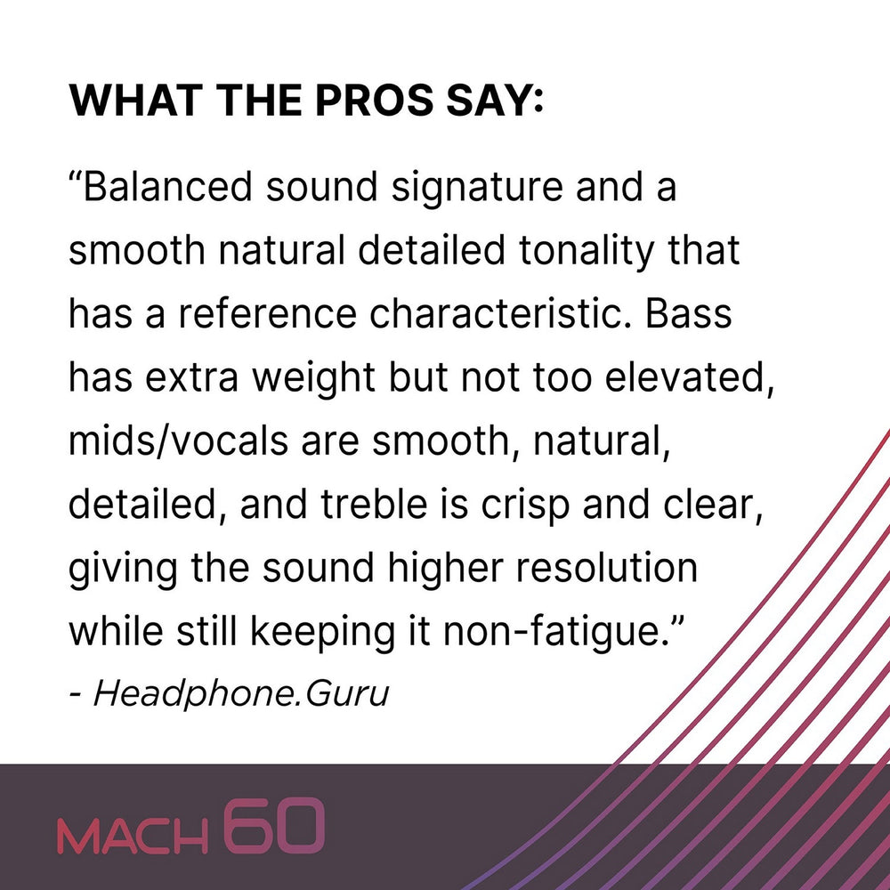 Featuring the lightweight and durable Linum Estron SuperBaX T2 cable, these monitors ensure comfort and minimal microphonics during extended use. The ergonomic design, combined with multiple ear tip options, guarantees a secure and comfortable fit, making the MACH 60 ideal for both studio mixing and live stage performances.