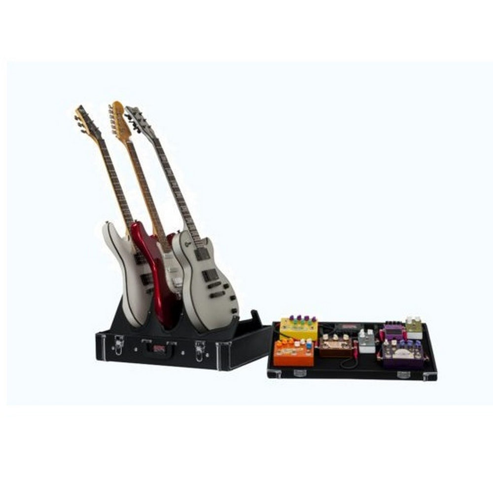 Gig-Box Jr. All-In-One Pedal Board and 3x Guitar Stand Combo in a Classic Wooden Case. 21.5 x 15 Pedal Board Surface