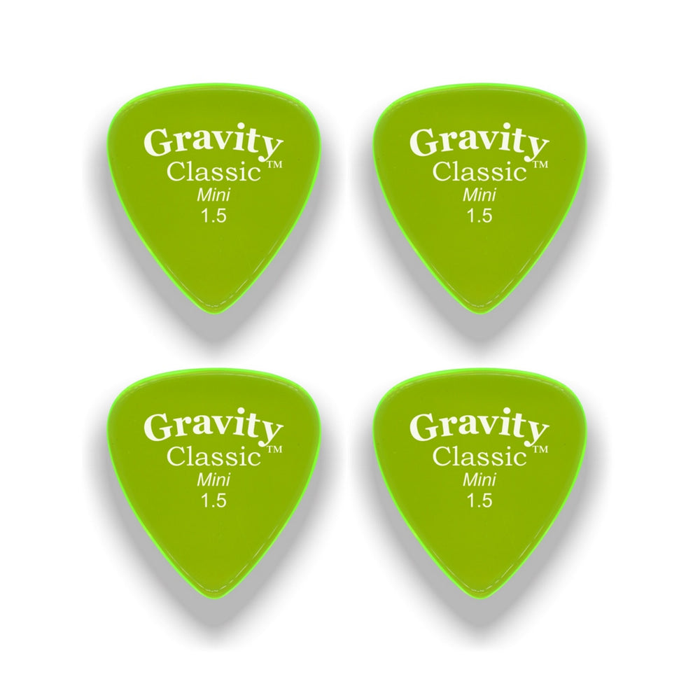 Gravity Picks GCLM15P-4pk Classic Picks, Polished, Mini Size, 1.5mm, Fluorescent Green, 4-Pack