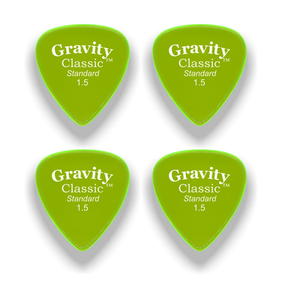 Gravity Picks GCLS15P-4pk Classic Picks Polished Standard Size 1.5mm Fluorescent Green 4-Pack - accessories