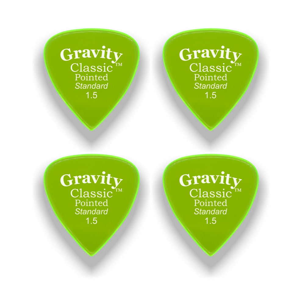 Gravity Picks GCPS15P-4pk Classic Pointed Picks Polished 1.5mm Fluorescent Green 4-Pack - accessories
