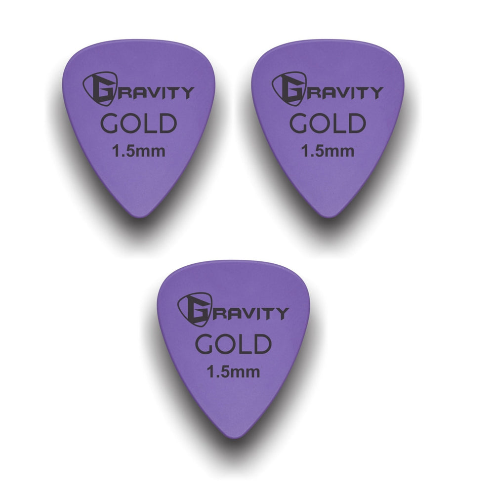 Gravity Picks GP15PU-3pk Colored Gold Series Picks, Traditional 351, 1.5mm, Purple, 3-Pack