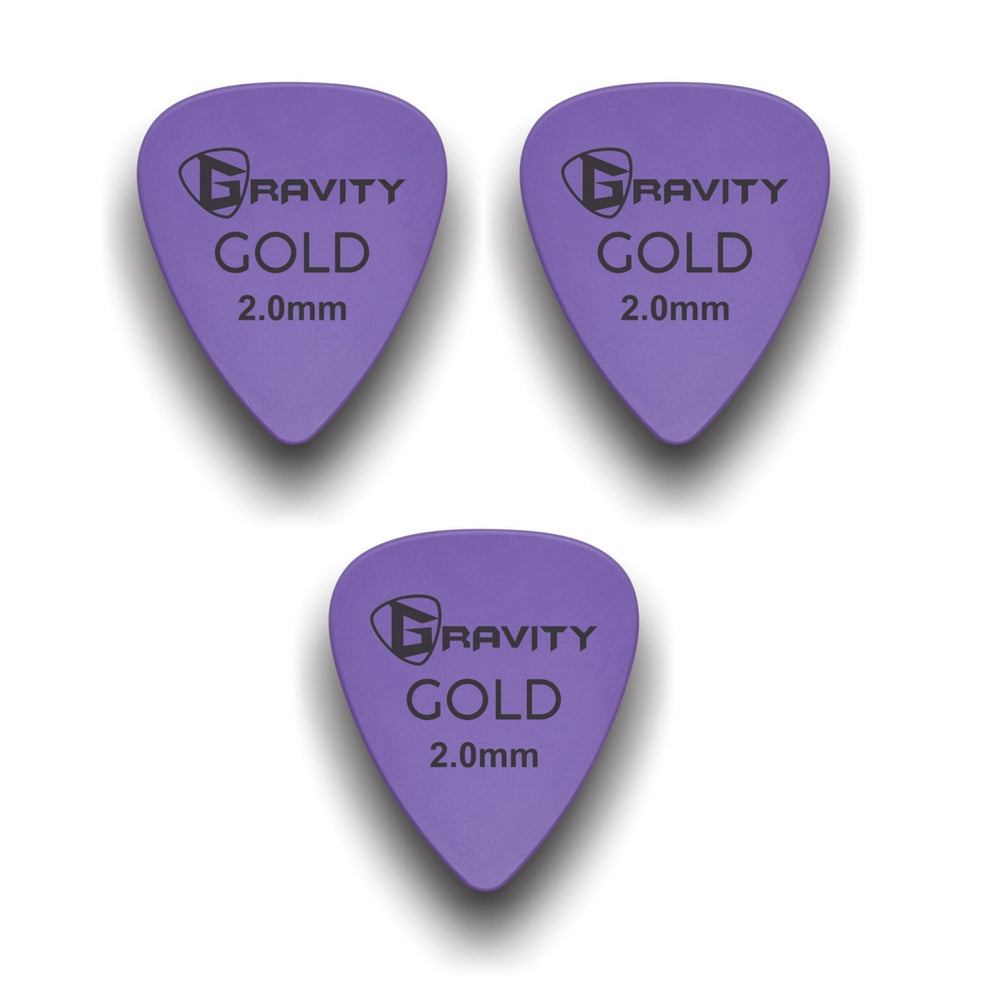 Gravity Picks GP20PU-3pk Colored Gold Series Picks, Traditional 351, 2.0mm, Purple, 3-Pack