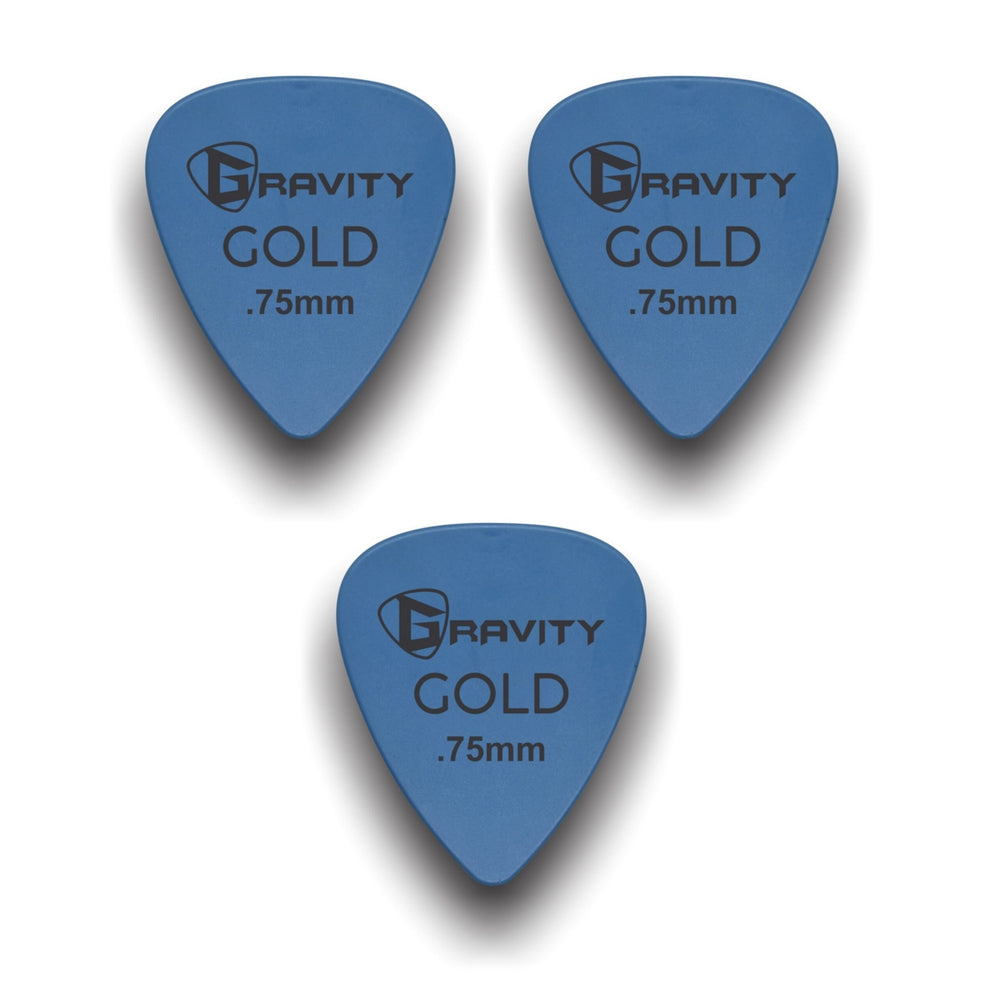 Gravity Picks GP75BL-3pk Colored Gold Series Picks, Traditional 351, 0.75mm, Blue, 3-Pack
