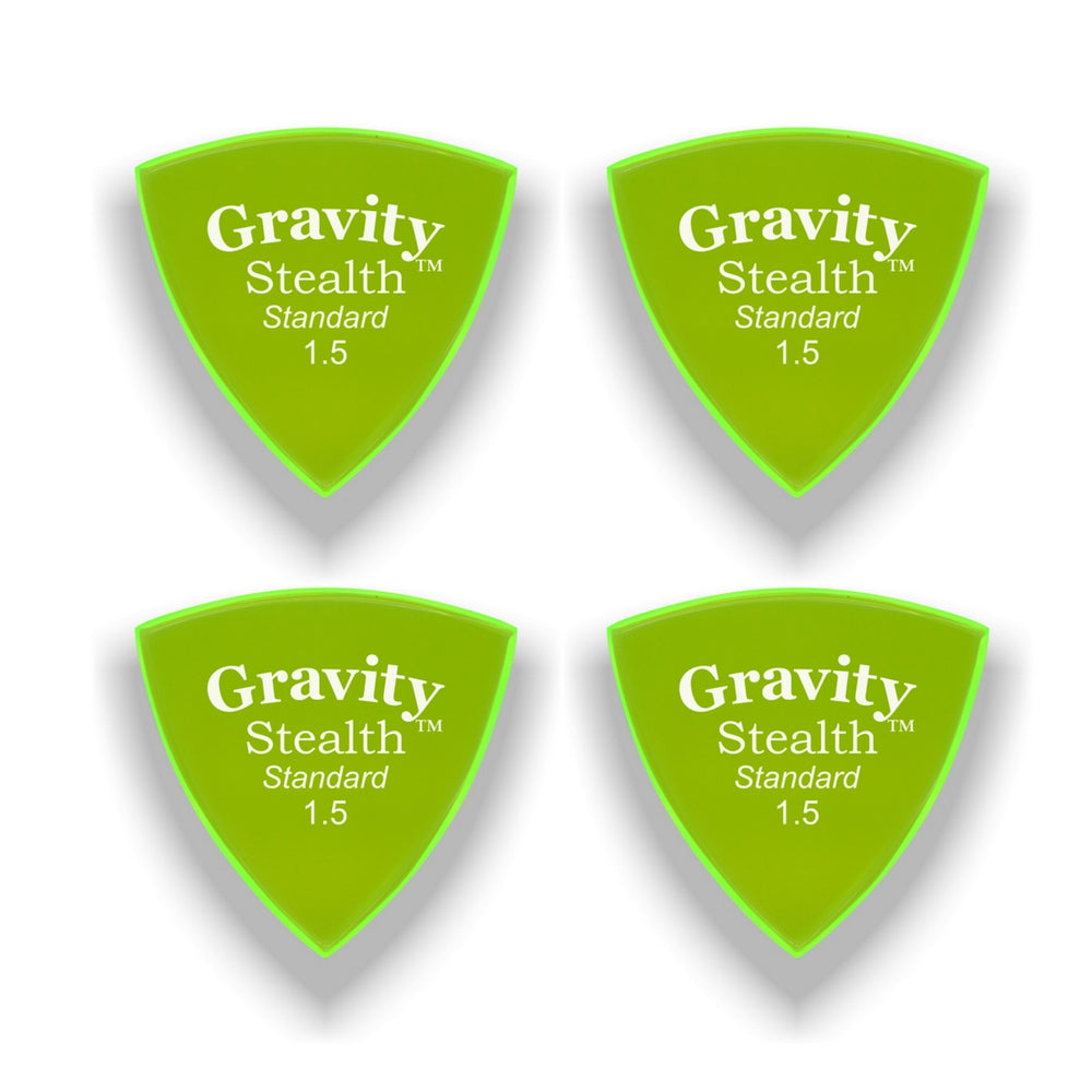 Gravity Picks GSSS15P-4pk Stealth Series Picks, Polished, Standard Size, 1.5mm, Fluorescent Green, 4-Pack