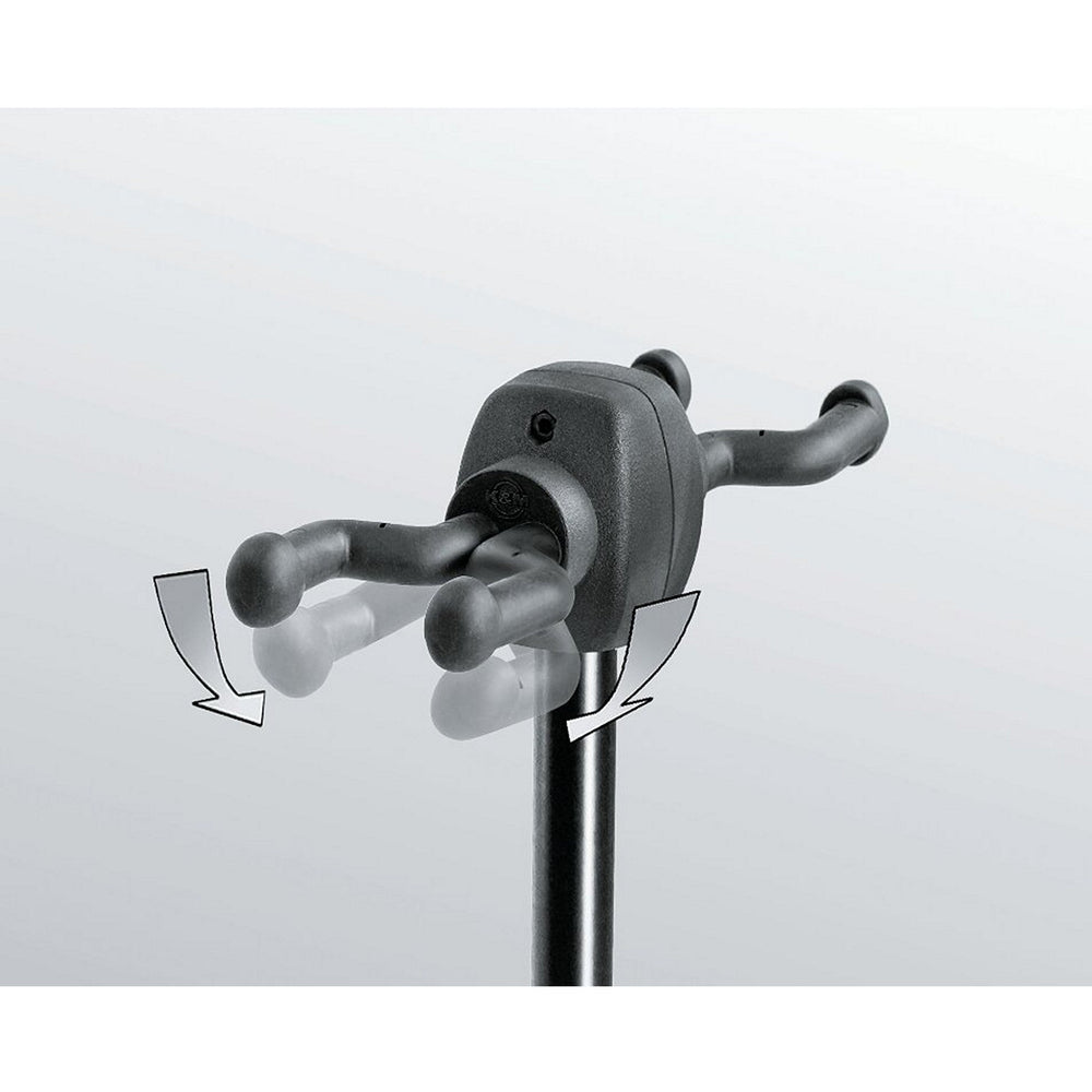 This robust and versatile double guitar stand is designed to securely hold two instruments at once, offering both safety and ease of use. Made with durable materials, this stand ensures that your guitars are safely supported without risk of scratching or damage. Its foldable design allows for convenient storage and portability. Perfect for musicians with multiple guitars, it provides stability and ease of access, ideal for both home studios and stage settings.
