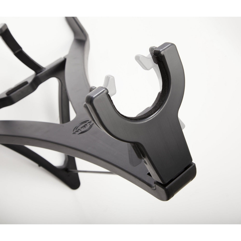 The support arms are equipped with soft felt pads that gently cradle your instrument, protecting it from scratches and damage. This thoughtful design accommodates all types of guitar finishes, including sensitive nitro lacquer. Additionally, the stand is equipped with a functional neck lock, providing a secure hold and peace of mind when your guitar is not in use.
