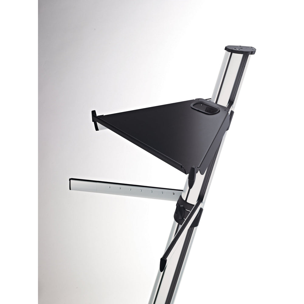 The K&M 18876 Controller Keyboard Tray is a functional and versatile addition to your Spider Pro keyboard stand. Designed for use with smaller synthesizers, controllers, drum machines, and other equipment, this aluminum tray allows you to create a more organized and efficient setup. It easily attaches to the upper support arms of the Spider Pro stand, offering a stable and secure platform for your gear. The tray’s integrated handle helps with convenient cable management, while the equipment stop and protective edge ensure your devices stay in place. For added stability, the tray is equipped with anti-slip rubber end caps. Weighing just 1 kg, it’s both lightweight and sturdy, making it perfect for on-the-go musicians.