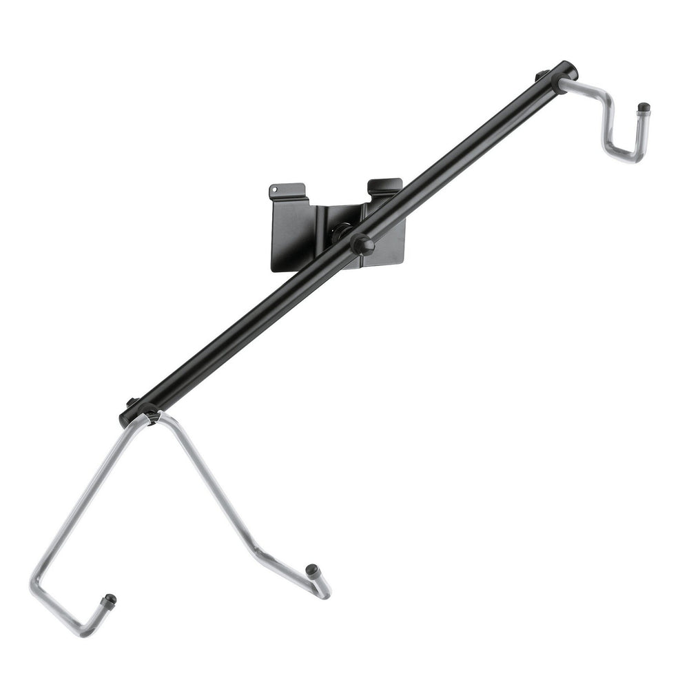 The Product Holder for Acoustic Guitar is designed to securely mount and display acoustic guitars on slat walls, making it an ideal solution for music stores, studios, or personal collections. This holder features flexible support arms that cradle both the neck and body of the guitar, ensuring a perfect presentation while keeping the instrument safe and secure. The support arms are covered with non-marring rubber, providing a protective grip that prevents any damage to the guitar's finish.
