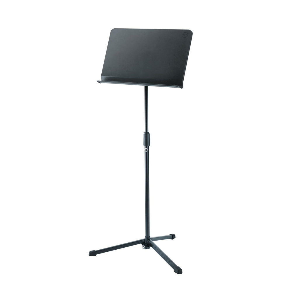 The K&M 11923 Orchestra Music Stand is an innovative and versatile solution designed to meet the rigorous demands of professional musicians and orchestras. This stand features an infinitely variable height adjustment mechanism utilizing a friction lock system, allowing for effortless and precise positioning. Musicians can easily adjust the support height by simply pushing the tube combination apart or back together, accommodating a range from 678 mm to 1,250 mm. For added stability, especially when supporting large and heavy music books exceeding 2.5 kg, the height can be securely fixed by tightening the clamping sleeve.