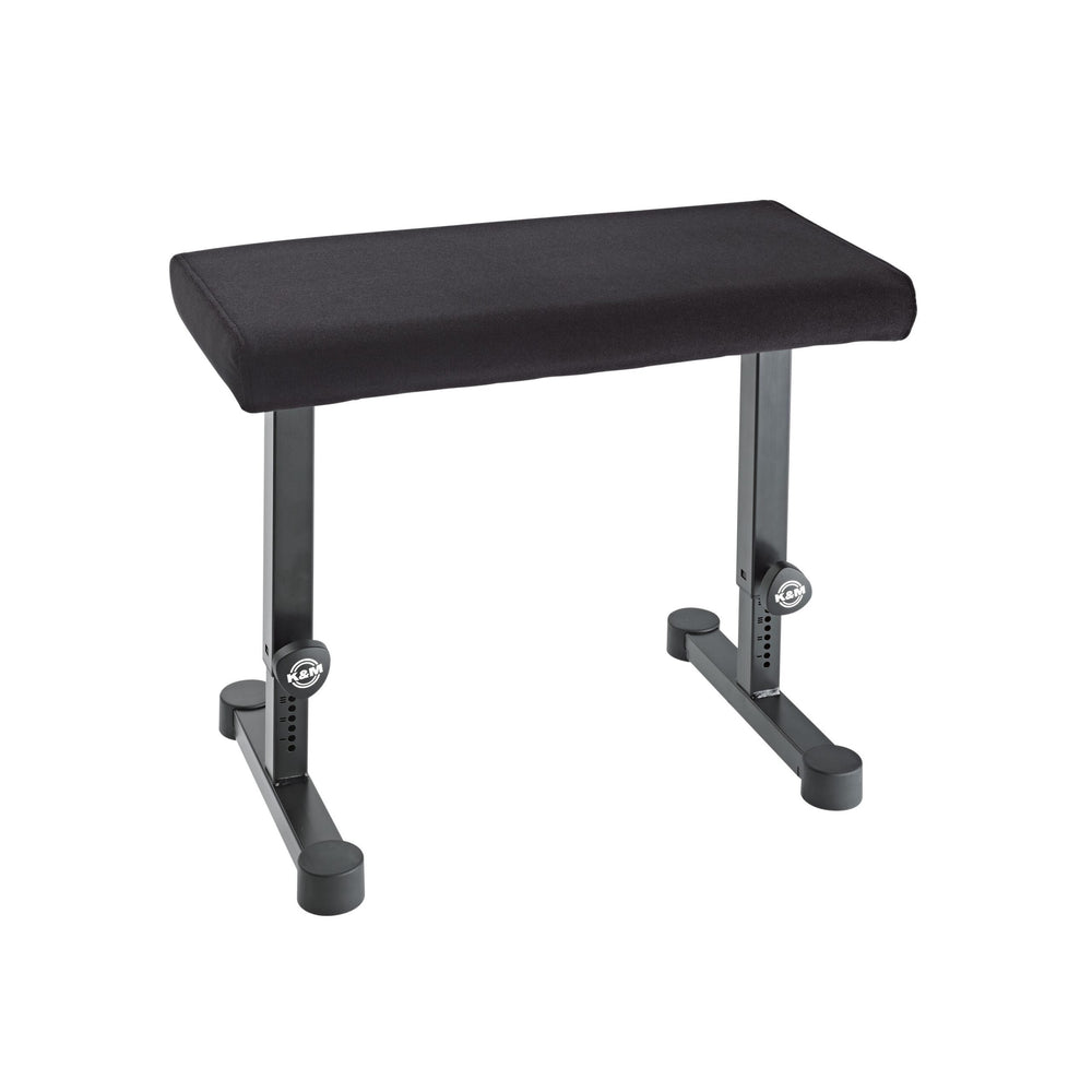 Its compact steel tubing construction and large round foot end caps make this attractive bench significantly more stable. Excellent sitting comfort is achieved by a wear-resistant fabric seat covering for enjoyable and relaxed keyboard playing. The two sided spring-loaded locking screws make precision height adjustment easy. There is an engraved height scale to find your personal setting with ease. The bench complements keyboard tables 18810/18820.
