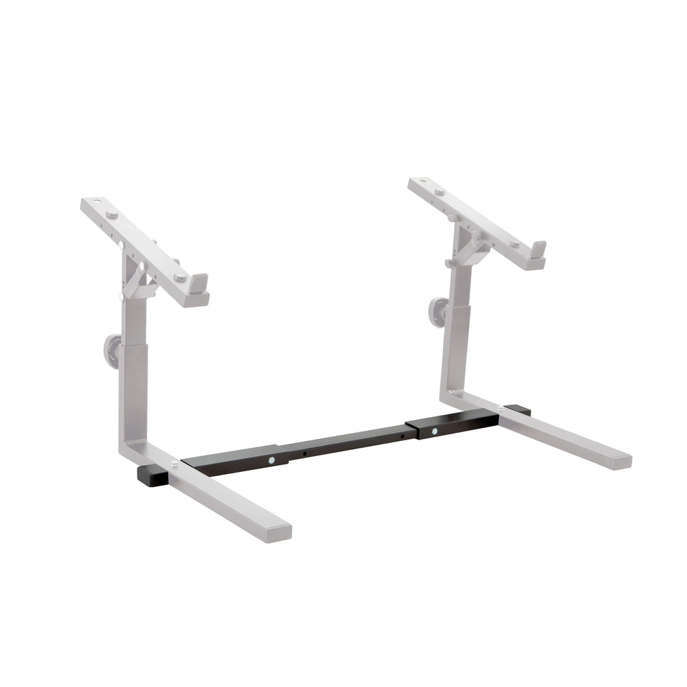 (ONLY IN CONNECTION WITH THE STACKER 18811) With the help of this basic support, the stacker 18811 can be converted into a complete keyboard table stand in no time at all. The width of the complete table stand can be adjusted in five steps from 20.709 to 30.315". Additionally the depth of the upper support arms of the attachment can be adjusted in 4 positions enabling a free view of the lower keyboard. The 18811 stacker can also be adjusted flexibly in height and incline. The 18819 tray is optionally available as a support for smaller electronic equipment. Self-adhesive rubber pads prevent the instruments from scratching or slipping. On request, the table stand can be extended to a third level with the stacker 18822.