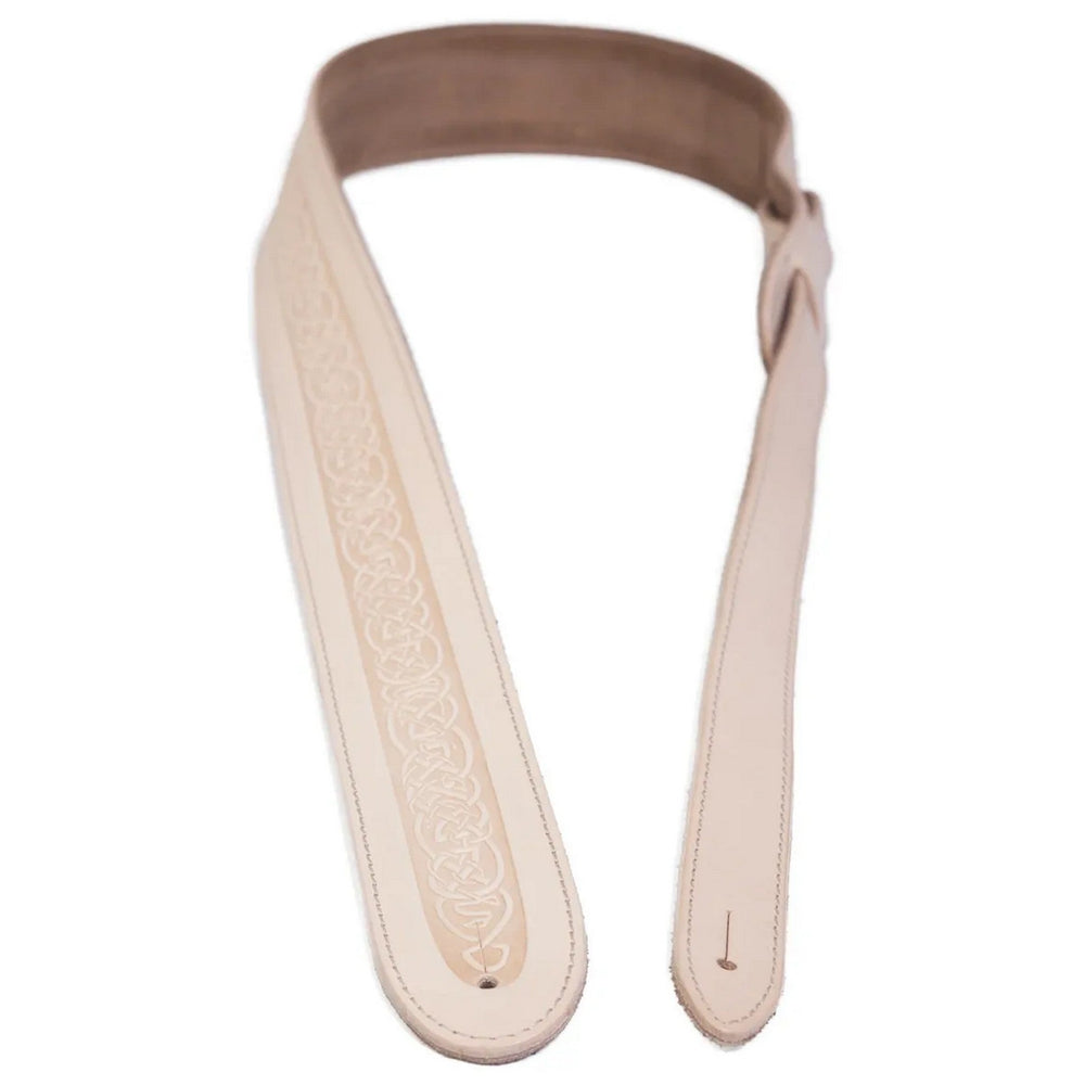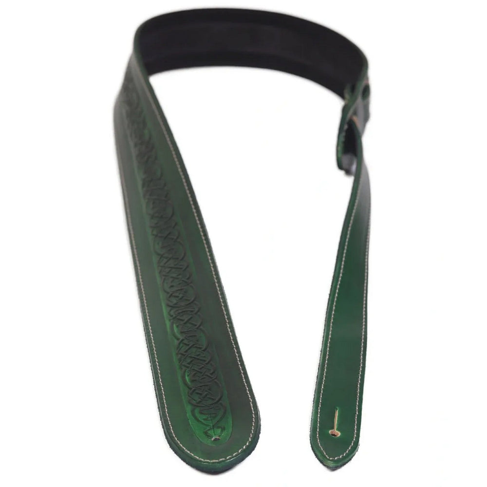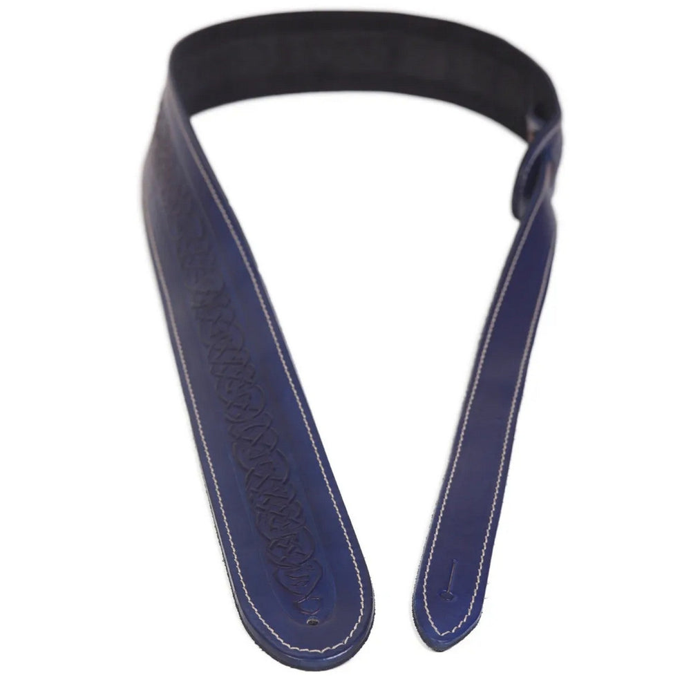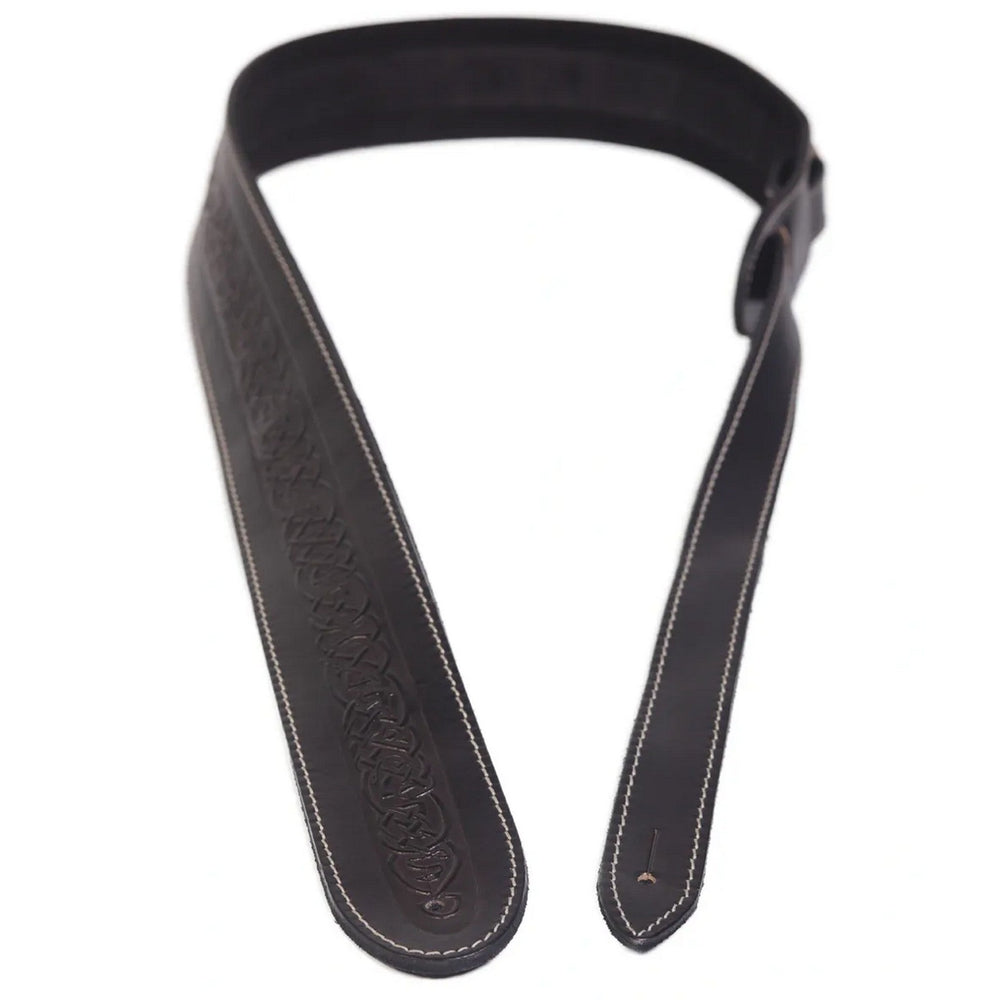 Designed for versatility, the strap includes a fully adjustable end, accommodating a range of playing styles and positions. For those desiring additional comfort, a padded variant is available, incorporating a sponge middle layer to provide extra support and weight relief. Whether you're performing on stage or practicing at home, the Leathergraft Celtic Embossed Guitar Strap combines functionality with timeless design.
