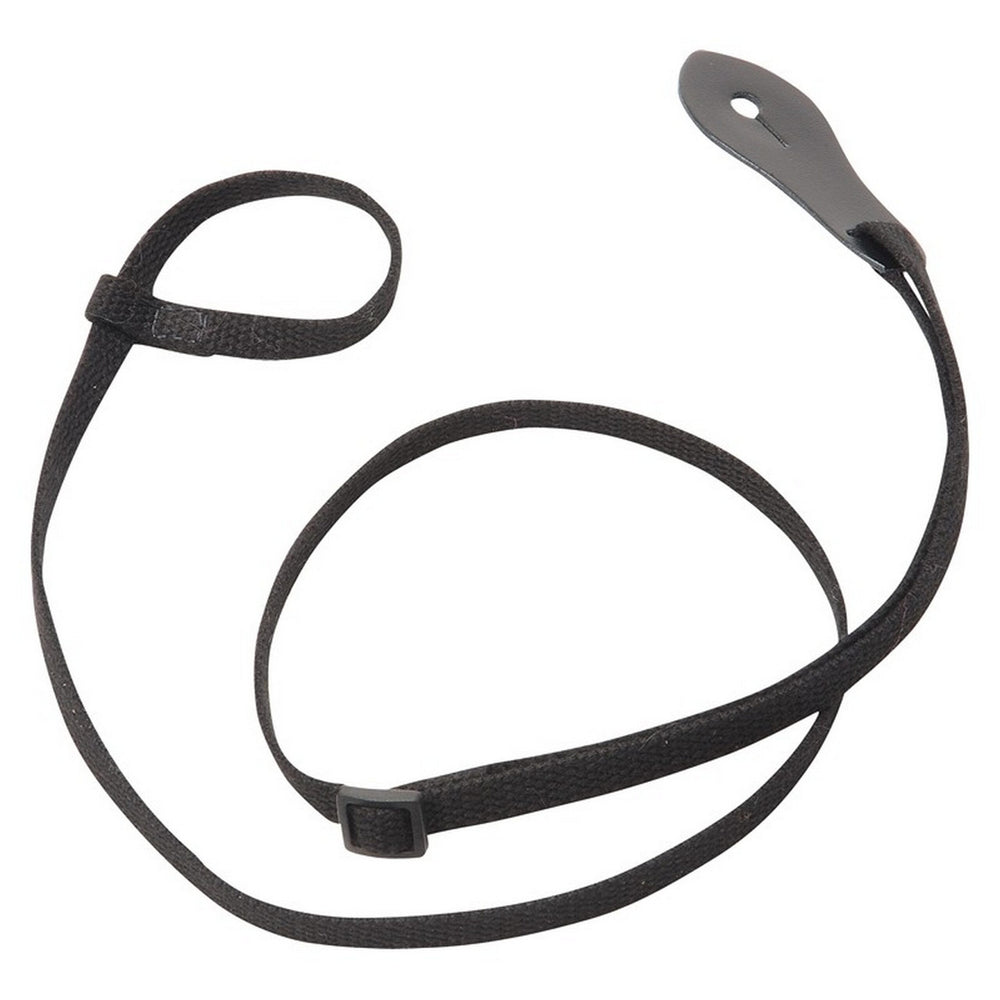 3/8" Cotton Webbing Mandolin Strap With One Leather End, One Loop End, And Tri-glide Adjustment. Adjustable To 39". Black Color