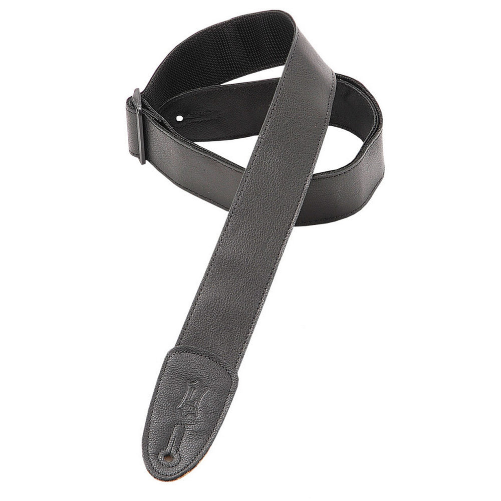 - Levy's 2" Wide Black Garment Leather Guitar Strap With Black Polypropolene Backing.