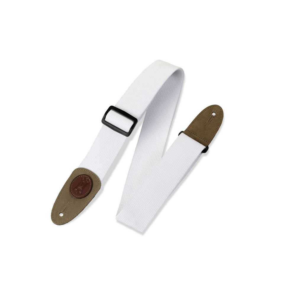 Levys MSSC8-WHT 2-Inch Signature Series Cotton Guitar Strap with Suede Ends and Tri-Glide Adjustment, White