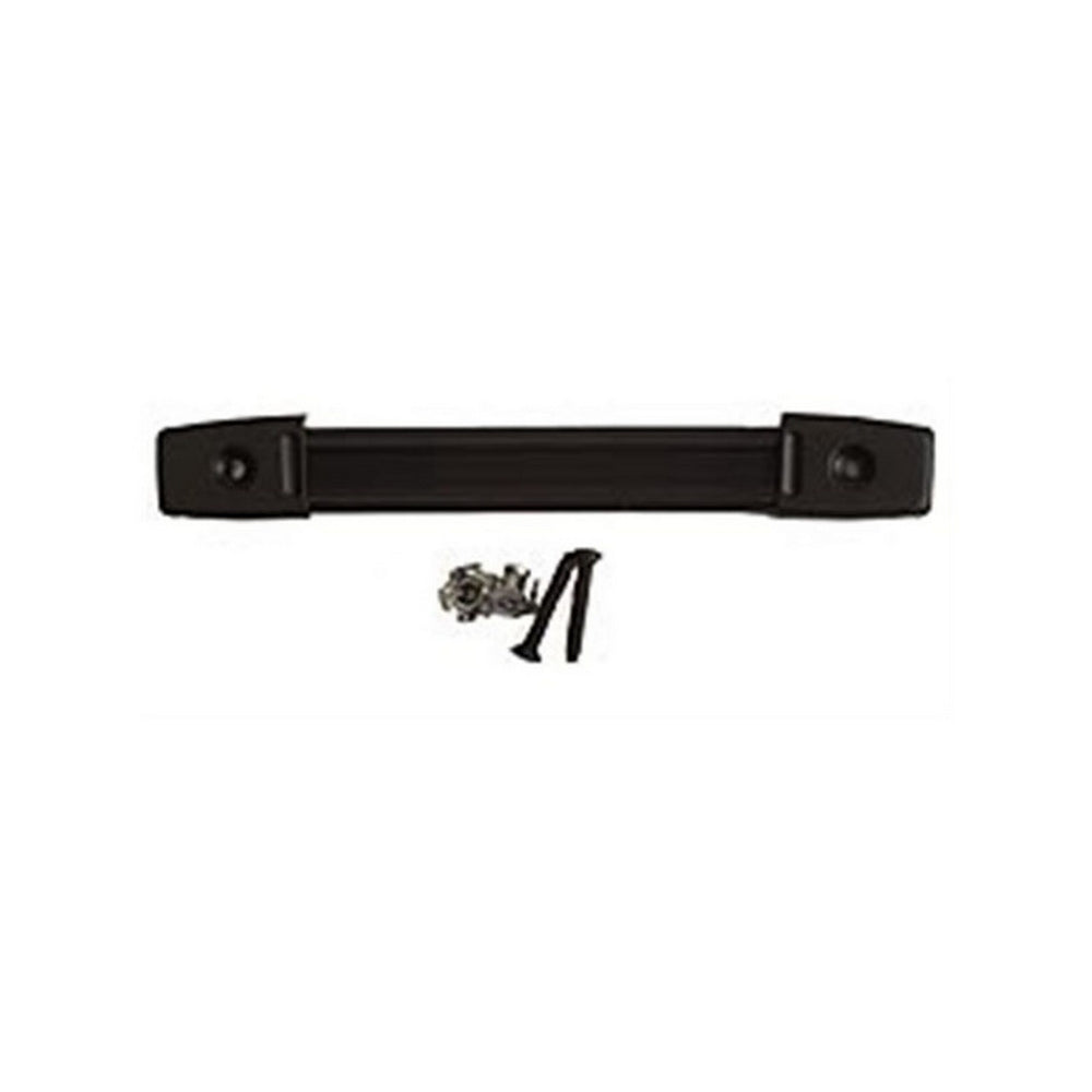 - Kit assembly includes one black retainer strap, two heavy-duty reinforcement caps, two threaded T-nuts, and two mounting bolts